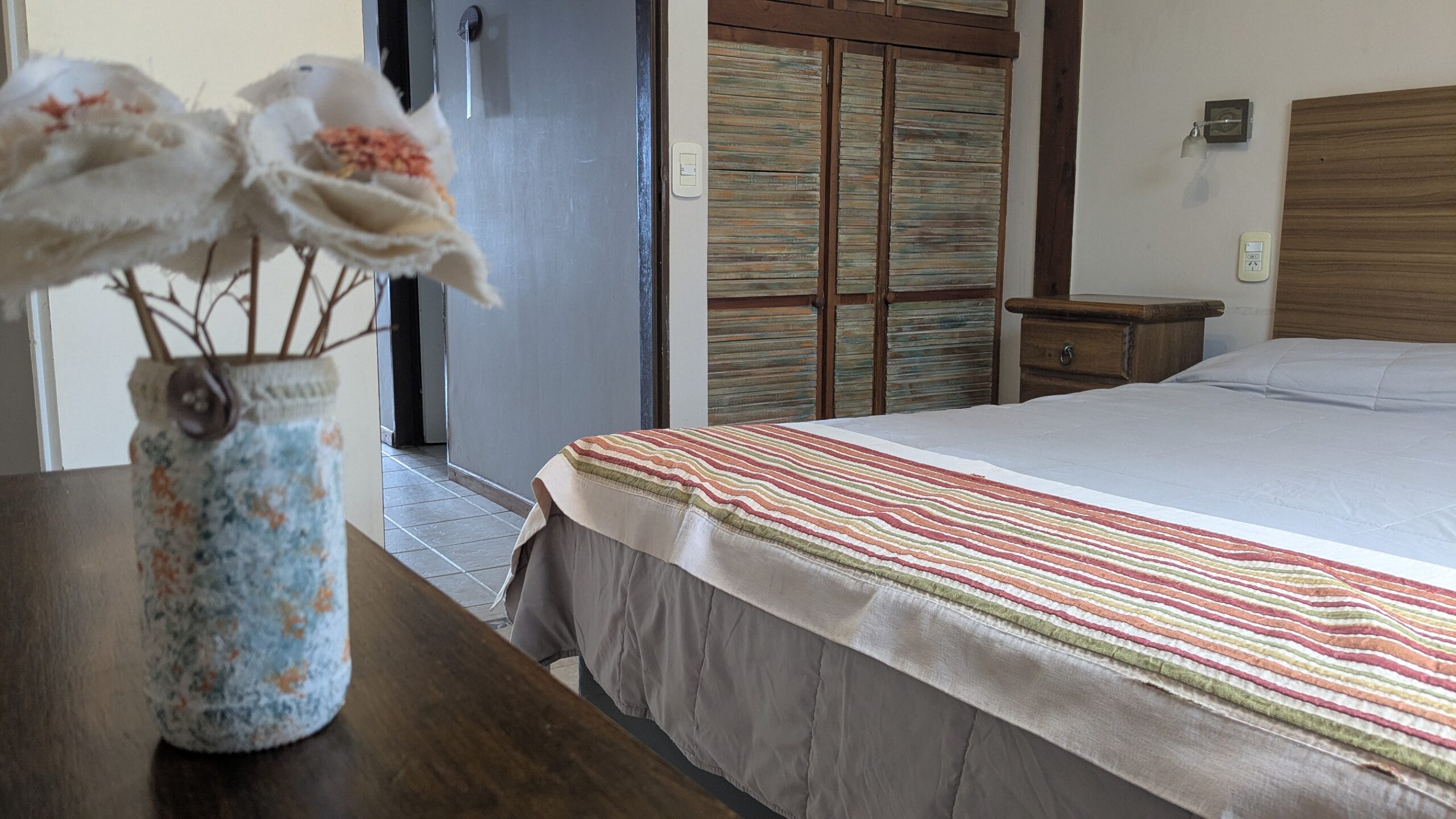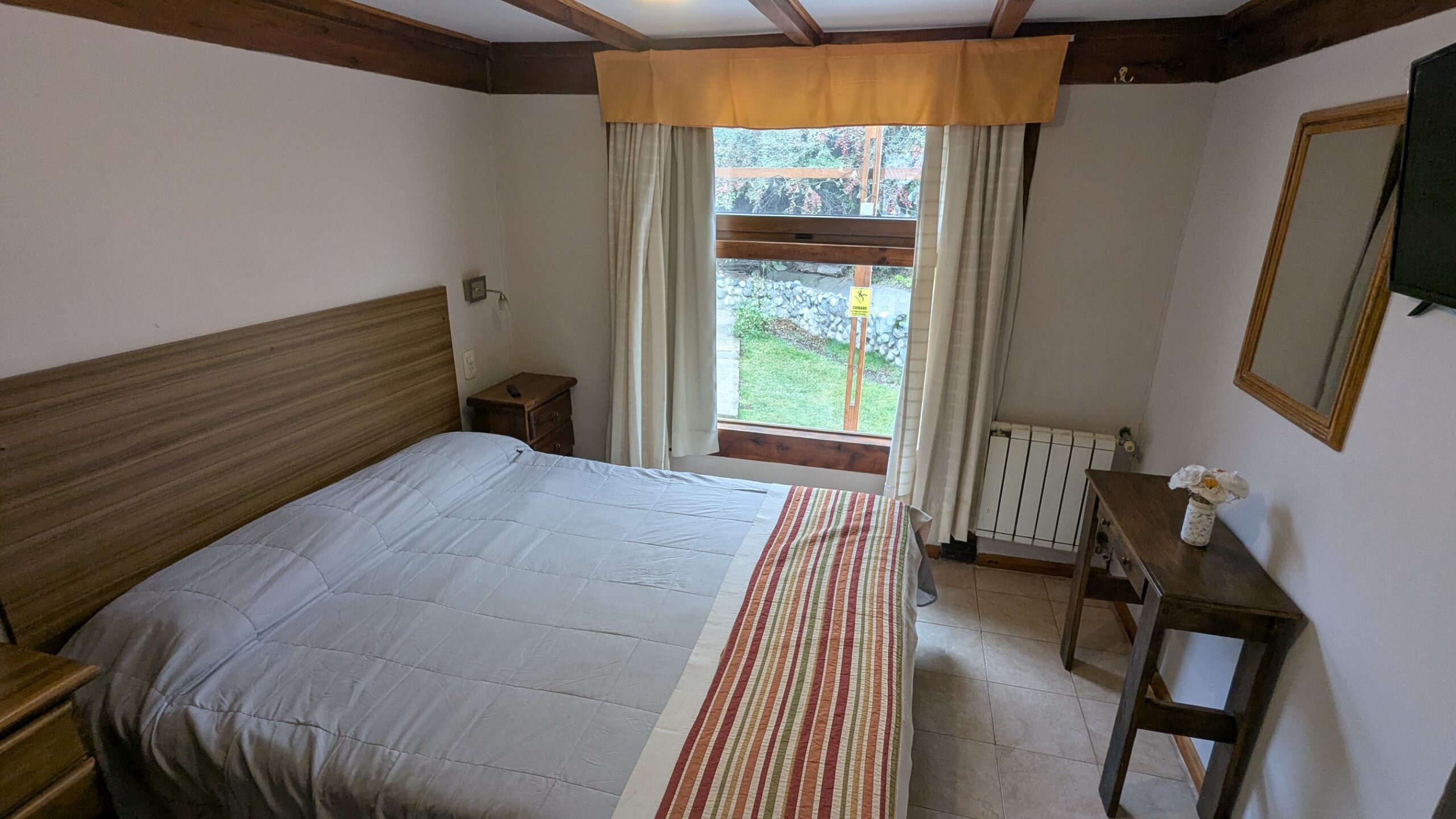 De  2 ambientes en una planta. Un dormitorio con somier matrimonial de 1.60m y un comedor con 2 camas de una plaza. Ideal para matrimonio con uno o dos niños pequeños. Baño completo. Superficie total aprox. 30 m2.