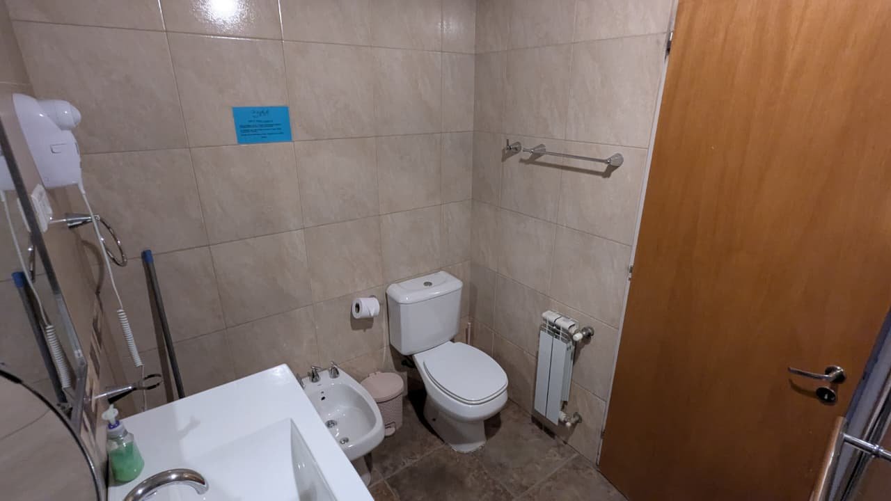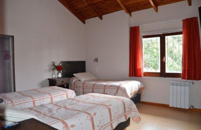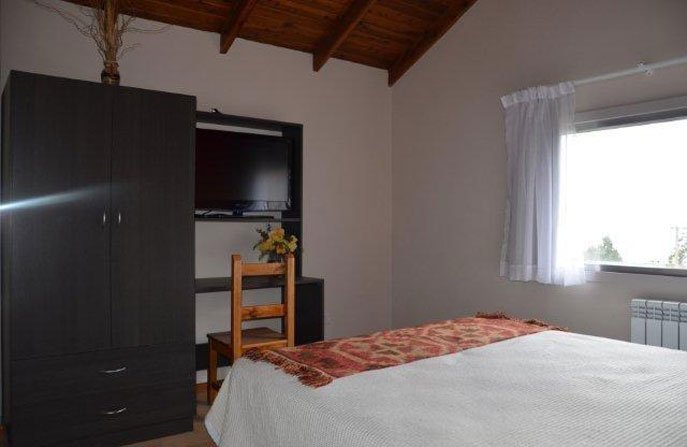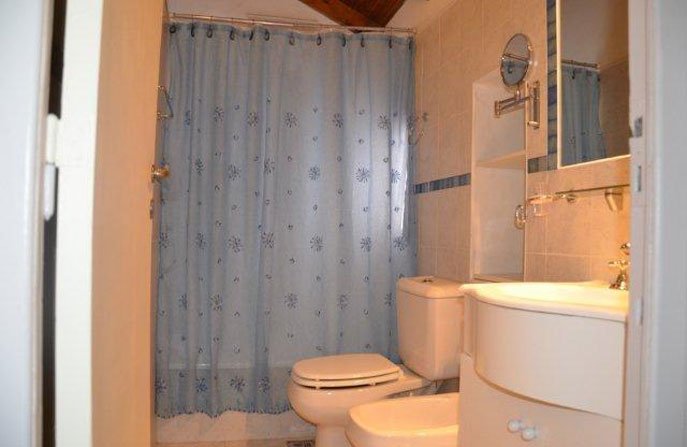 En la planta baja hay un baño completo equipado con un hidromasaje doble y bidet. En la planta alta hay dos dormitorios y un baño completo con bañera y bidet, uno de los dormitorios tiene un somier queen matrimonial y un L.C.D. de 32″ y tiene vista al lago, el otro esta equipado con tres somier de una plaza o puede ser armado con uno de una plaza y un somier queen matrimonial, en esta habitación, también hay un LCD de 32″.